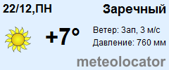 Представляем прогноз погоды в Заречном на 3 дня (сегодня, завтра и послезавтра). Подробнее...Щелкните на соответствующем дне, чтобы получить подробный прогноз по нему. Для просмотра расширенных данных щелкните по заголовку соответствующего блока из группы блоков, расплолженных ниже основного прогноза. Для получения данных на другие дни используйте стрелки слева и справа от таблицы или навигационное меню в левой колонке страницы. Свернуть