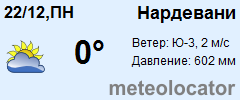 Представляем прогноз погоды в Нардевани на 3 дня (сегодня, завтра и послезавтра). Подробнее...Щелкните на соответствующем дне, чтобы получить подробный прогноз по нему. Для просмотра расширенных данных щелкните по заголовку соответствующего блока из группы блоков, расплолженных ниже основного прогноза. Для получения данных на другие дни используйте стрелки слева и справа от таблицы или навигационное меню в левой колонке страницы. Свернуть