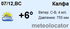 Представляем прогноз погоды в Калфе на 3 дня (сегодня, завтра и послезавтра). Подробнее...Щелкните на соответствующем дне, чтобы получить подробный прогноз по нему. Для просмотра расширенных данных щелкните по заголовку соответствующего блока из группы блоков, расплолженных ниже основного прогноза. Для получения данных на другие дни используйте стрелки слева и справа от таблицы или навигационное меню в левой колонке страницы. Свернуть