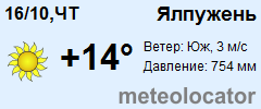 Представляем прогноз погоды в Ялпужене на 3 дня (сегодня, завтра и послезавтра). Подробнее...Щелкните на соответствующем дне, чтобы получить подробный прогноз по нему. Для просмотра расширенных данных щелкните по заголовку соответствующего блока из группы блоков, расплолженных ниже основного прогноза. Для получения данных на другие дни используйте стрелки слева и справа от таблицы или навигационное меню в левой колонке страницы. Свернуть