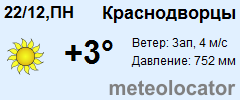 Представляем прогноз погоды в Краснодворцах на 3 дня (сегодня, завтра и послезавтра). Подробнее...Щелкните на соответствующем дне, чтобы получить подробный прогноз по нему. Для просмотра расширенных данных щелкните по заголовку соответствующего блока из группы блоков, расплолженных ниже основного прогноза. Для получения данных на другие дни используйте стрелки слева и справа от таблицы или навигационное меню в левой колонке страницы. Свернуть