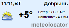 Представляем прогноз погоды в Добрыни на 3 дня (сегодня, завтра и послезавтра). Подробнее...Щелкните на соответствующем дне, чтобы получить подробный прогноз по нему. Для просмотра расширенных данных щелкните по заголовку соответствующего блока из группы блоков, расплолженных ниже основного прогноза. Для получения данных на другие дни используйте стрелки слева и справа от таблицы или навигационное меню в левой колонке страницы. Свернуть