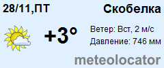Представляем прогноз погоды в Скобелке на 3 дня (сегодня, завтра и послезавтра). Подробнее...Щелкните на соответствующем дне, чтобы получить подробный прогноз по нему. Для просмотра расширенных данных щелкните по заголовку соответствующего блока из группы блоков, расплолженных ниже основного прогноза. Для получения данных на другие дни используйте стрелки слева и справа от таблицы или навигационное меню в левой колонке страницы. Свернуть