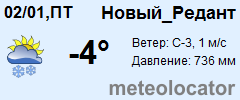 Представляем прогноз погоды в Новом Реданте на 3 дня (сегодня, завтра и послезавтра). Подробнее...Щелкните на соответствующем дне, чтобы получить подробный прогноз по нему. Для просмотра расширенных данных щелкните по заголовку соответствующего блока из группы блоков, расплолженных ниже основного прогноза. Для получения данных на другие дни используйте стрелки слева и справа от таблицы или навигационное меню в левой колонке страницы. Свернуть