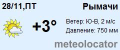 Представляем прогноз погоды в Рымачах на 3 дня (сегодня, завтра и послезавтра). Подробнее...Щелкните на соответствующем дне, чтобы получить подробный прогноз по нему. Для просмотра расширенных данных щелкните по заголовку соответствующего блока из группы блоков, расплолженных ниже основного прогноза. Для получения данных на другие дни используйте стрелки слева и справа от таблицы или навигационное меню в левой колонке страницы. Свернуть