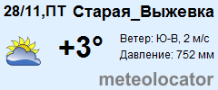 Представляем прогноз погоды в Старой Выжевке на 3 дня (сегодня, завтра и послезавтра). Подробнее...Щелкните на соответствующем дне, чтобы получить подробный прогноз по нему. Для просмотра расширенных данных щелкните по заголовку соответствующего блока из группы блоков, расплолженных ниже основного прогноза. Для получения данных на другие дни используйте стрелки слева и справа от таблицы или навигационное меню в левой колонке страницы. Свернуть