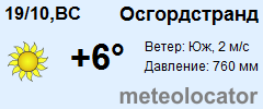 Представляем прогноз погоды в Осгордстранде на 3 дня (сегодня, завтра и послезавтра). Подробнее...Щелкните на соответствующем дне, чтобы получить подробный прогноз по нему. Для просмотра расширенных данных щелкните по заголовку соответствующего блока из группы блоков, расплолженных ниже основного прогноза. Для получения данных на другие дни используйте стрелки слева и справа от таблицы или навигационное меню в левой колонке страницы. Свернуть
