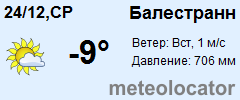 Представляем прогноз погоды в Балестранне на 3 дня (сегодня, завтра и послезавтра). Подробнее...Щелкните на соответствующем дне, чтобы получить подробный прогноз по нему. Для просмотра расширенных данных щелкните по заголовку соответствующего блока из группы блоков, расплолженных ниже основного прогноза. Для получения данных на другие дни используйте стрелки слева и справа от таблицы или навигационное меню в левой колонке страницы. Свернуть