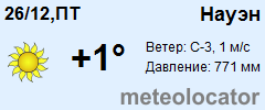 Представляем прогноз погоды в Науэне на 3 дня (сегодня, завтра и послезавтра). Подробнее...Щелкните на соответствующем дне, чтобы получить подробный прогноз по нему. Для просмотра расширенных данных щелкните по заголовку соответствующего блока из группы блоков, расплолженных ниже основного прогноза. Для получения данных на другие дни используйте стрелки слева и справа от таблицы или навигационное меню в левой колонке страницы. Свернуть