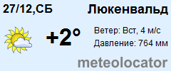 Представляем прогноз погоды в Люкенвальде на 3 дня (сегодня, завтра и послезавтра). Подробнее...Щелкните на соответствующем дне, чтобы получить подробный прогноз по нему. Для просмотра расширенных данных щелкните по заголовку соответствующего блока из группы блоков, расплолженных ниже основного прогноза. Для получения данных на другие дни используйте стрелки слева и справа от таблицы или навигационное меню в левой колонке страницы. Свернуть
