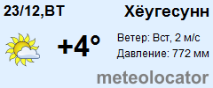 Представляем прогноз погоды в Хёугесунне на 3 дня (сегодня, завтра и послезавтра). Подробнее...Щелкните на соответствующем дне, чтобы получить подробный прогноз по нему. Для просмотра расширенных данных щелкните по заголовку соответствующего блока из группы блоков, расплолженных ниже основного прогноза. Для получения данных на другие дни используйте стрелки слева и справа от таблицы или навигационное меню в левой колонке страницы. Свернуть