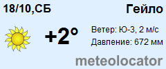 Представляем прогноз погоды в Гейло на 3 дня (сегодня, завтра и послезавтра). Подробнее...Щелкните на соответствующем дне, чтобы получить подробный прогноз по нему. Для просмотра расширенных данных щелкните по заголовку соответствующего блока из группы блоков, расплолженных ниже основного прогноза. Для получения данных на другие дни используйте стрелки слева и справа от таблицы или навигационное меню в левой колонке страницы. Свернуть