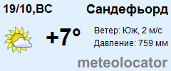 Представляем прогноз погоды в Сандефьорде на 3 дня (сегодня, завтра и послезавтра). Подробнее...Щелкните на соответствующем дне, чтобы получить подробный прогноз по нему. Для просмотра расширенных данных щелкните по заголовку соответствующего блока из группы блоков, расплолженных ниже основного прогноза. Для получения данных на другие дни используйте стрелки слева и справа от таблицы или навигационное меню в левой колонке страницы. Свернуть