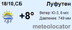 Представляем прогноз погоды на Лофотенских островах на 3 дня (сегодня, завтра и послезавтра). Подробнее...Щелкните на соответствующем дне, чтобы получить подробный прогноз по нему. Для просмотра расширенных данных щелкните по заголовку соответствующего блока из группы блоков, расплолженных ниже основного прогноза. Для получения данных на другие дни используйте стрелки слева и справа от таблицы или навигационное меню в левой колонке страницы. Свернуть