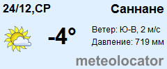 Представляем прогноз погоды в Саннане на 3 дня (сегодня, завтра и послезавтра). Подробнее...Щелкните на соответствующем дне, чтобы получить подробный прогноз по нему. Для просмотра расширенных данных щелкните по заголовку соответствующего блока из группы блоков, расплолженных ниже основного прогноза. Для получения данных на другие дни используйте стрелки слева и справа от таблицы или навигационное меню в левой колонке страницы. Свернуть