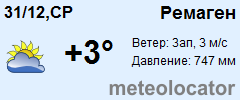 Представляем прогноз погоды в Ремагене на 3 дня (сегодня, завтра и послезавтра). Подробнее...Щелкните на соответствующем дне, чтобы получить подробный прогноз по нему. Для просмотра расширенных данных щелкните по заголовку соответствующего блока из группы блоков, расплолженных ниже основного прогноза. Для получения данных на другие дни используйте стрелки слева и справа от таблицы или навигационное меню в левой колонке страницы. Свернуть