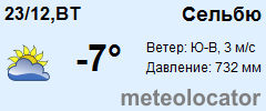Представляем прогноз погоды в Сельбю на 3 дня (сегодня, завтра и послезавтра). Подробнее...Щелкните на соответствующем дне, чтобы получить подробный прогноз по нему. Для просмотра расширенных данных щелкните по заголовку соответствующего блока из группы блоков, расплолженных ниже основного прогноза. Для получения данных на другие дни используйте стрелки слева и справа от таблицы или навигационное меню в левой колонке страницы. Свернуть
