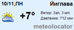 Представляем прогноз погоды в Йиглаве на 3 дня (сегодня, завтра и послезавтра). Подробнее...Щелкните на соответствующем дне, чтобы получить подробный прогноз по нему. Для просмотра расширенных данных щелкните по заголовку соответствующего блока из группы блоков, расплолженных ниже основного прогноза. Для получения данных на другие дни используйте стрелки слева и справа от таблицы или навигационное меню в левой колонке страницы. Свернуть