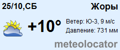 Представляем прогноз погоды в Жорах на 3 дня (сегодня, завтра и послезавтра). Подробнее...Щелкните на соответствующем дне, чтобы получить подробный прогноз по нему. Для просмотра расширенных данных щелкните по заголовку соответствующего блока из группы блоков, расплолженных ниже основного прогноза. Для получения данных на другие дни используйте стрелки слева и справа от таблицы или навигационное меню в левой колонке страницы. Свернуть