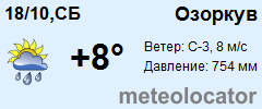 Представляем прогноз погоды в Озоркуве на 3 дня (сегодня, завтра и послезавтра). Подробнее...Щелкните на соответствующем дне, чтобы получить подробный прогноз по нему. Для просмотра расширенных данных щелкните по заголовку соответствующего блока из группы блоков, расплолженных ниже основного прогноза. Для получения данных на другие дни используйте стрелки слева и справа от таблицы или навигационное меню в левой колонке страницы. Свернуть