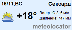 Представляем прогноз погоды в Сексарде на 3 дня (сегодня, завтра и послезавтра). Подробнее...Щелкните на соответствующем дне, чтобы получить подробный прогноз по нему. Для просмотра расширенных данных щелкните по заголовку соответствующего блока из группы блоков, расплолженных ниже основного прогноза. Для получения данных на другие дни используйте стрелки слева и справа от таблицы или навигационное меню в левой колонке страницы. Свернуть