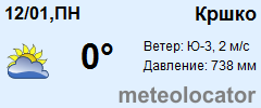 Представляем прогноз погоды в Кршко на 3 дня (сегодня, завтра и послезавтра). Подробнее...Щелкните на соответствующем дне, чтобы получить подробный прогноз по нему. Для просмотра расширенных данных щелкните по заголовку соответствующего блока из группы блоков, расплолженных ниже основного прогноза. Для получения данных на другие дни используйте стрелки слева и справа от таблицы или навигационное меню в левой колонке страницы. Свернуть