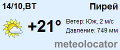 Представляем прогноз погоды в Пирее на 3 дня (сегодня, завтра и послезавтра). Подробнее...Щелкните на соответствующем дне, чтобы получить подробный прогноз по нему. Для просмотра расширенных данных щелкните по заголовку соответствующего блока из группы блоков, расплолженных ниже основного прогноза. Для получения данных на другие дни используйте стрелки слева и справа от таблицы или навигационное меню в левой колонке страницы. Свернуть