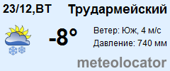 Представляем прогноз погоды в Трудармейском на 3 дня (сегодня, завтра и послезавтра). Подробнее...Щелкните на соответствующем дне, чтобы получить подробный прогноз по нему. Для просмотра расширенных данных щелкните по заголовку соответствующего блока из группы блоков, расплолженных ниже основного прогноза. Для получения данных на другие дни используйте стрелки слева и справа от таблицы или навигационное меню в левой колонке страницы. Свернуть