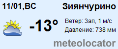 Представляем прогноз погоды в Зиянчурино на 3 дня (сегодня, завтра и послезавтра). Подробнее...Щелкните на соответствующем дне, чтобы получить подробный прогноз по нему. Для просмотра расширенных данных щелкните по заголовку соответствующего блока из группы блоков, расплолженных ниже основного прогноза. Для получения данных на другие дни используйте стрелки слева и справа от таблицы или навигационное меню в левой колонке страницы. Свернуть