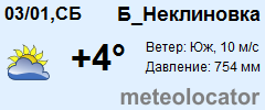 Представляем прогноз погоды в Большой Неклиновке на 3 дня (сегодня, завтра и послезавтра). Подробнее...Щелкните на соответствующем дне, чтобы получить подробный прогноз по нему. Для просмотра расширенных данных щелкните по заголовку соответствующего блока из группы блоков, расплолженных ниже основного прогноза. Для получения данных на другие дни используйте стрелки слева и справа от таблицы или навигационное меню в левой колонке страницы. Свернуть