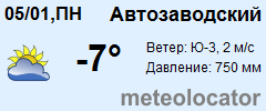 Представляем прогноз погоды в Автозаводском районе на 3 дня (сегодня, завтра и послезавтра). Подробнее...Щелкните на соответствующем дне, чтобы получить подробный прогноз по нему. Для просмотра расширенных данных щелкните по заголовку соответствующего блока из группы блоков, расплолженных ниже основного прогноза. Для получения данных на другие дни используйте стрелки слева и справа от таблицы или навигационное меню в левой колонке страницы. Свернуть