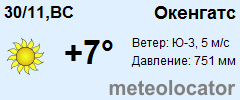 Представляем прогноз погоды в Окенгатсе на 3 дня (сегодня, завтра и послезавтра). Подробнее...Щелкните на соответствующем дне, чтобы получить подробный прогноз по нему. Для просмотра расширенных данных щелкните по заголовку соответствующего блока из группы блоков, расплолженных ниже основного прогноза. Для получения данных на другие дни используйте стрелки слева и справа от таблицы или навигационное меню в левой колонке страницы. Свернуть