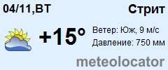 Представляем прогноз погоды в Стрите на 3 дня (сегодня, завтра и послезавтра). Подробнее...Щелкните на соответствующем дне, чтобы получить подробный прогноз по нему. Для просмотра расширенных данных щелкните по заголовку соответствующего блока из группы блоков, расплолженных ниже основного прогноза. Для получения данных на другие дни используйте стрелки слева и справа от таблицы или навигационное меню в левой колонке страницы. Свернуть
