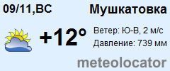 Представляем прогноз погоды в Мушкатовке на 3 дня (сегодня, завтра и послезавтра). Подробнее...Щелкните на соответствующем дне, чтобы получить подробный прогноз по нему. Для просмотра расширенных данных щелкните по заголовку соответствующего блока из группы блоков, расплолженных ниже основного прогноза. Для получения данных на другие дни используйте стрелки слева и справа от таблицы или навигационное меню в левой колонке страницы. Свернуть