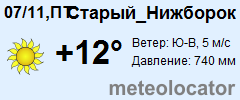 Представляем прогноз погоды в Старом Нижборке на 3 дня (сегодня, завтра и послезавтра). Подробнее...Щелкните на соответствующем дне, чтобы получить подробный прогноз по нему. Для просмотра расширенных данных щелкните по заголовку соответствующего блока из группы блоков, расплолженных ниже основного прогноза. Для получения данных на другие дни используйте стрелки слева и справа от таблицы или навигационное меню в левой колонке страницы. Свернуть