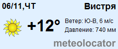 Представляем прогноз погоды в Вистре на 3 дня (сегодня, завтра и послезавтра). Подробнее...Щелкните на соответствующем дне, чтобы получить подробный прогноз по нему. Для просмотра расширенных данных щелкните по заголовку соответствующего блока из группы блоков, расплолженных ниже основного прогноза. Для получения данных на другие дни используйте стрелки слева и справа от таблицы или навигационное меню в левой колонке страницы. Свернуть