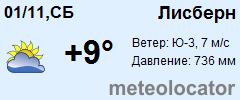 Представляем прогноз погоды в Лисберне на 3 дня (сегодня, завтра и послезавтра). Подробнее...Щелкните на соответствующем дне, чтобы получить подробный прогноз по нему. Для просмотра расширенных данных щелкните по заголовку соответствующего блока из группы блоков, расплолженных ниже основного прогноза. Для получения данных на другие дни используйте стрелки слева и справа от таблицы или навигационное меню в левой колонке страницы. Свернуть