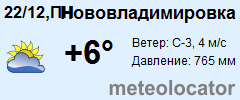 Представляем прогноз погоды в Нововладимировке на 3 дня (сегодня, завтра и послезавтра). Подробнее...Щелкните на соответствующем дне, чтобы получить подробный прогноз по нему. Для просмотра расширенных данных щелкните по заголовку соответствующего блока из группы блоков, расплолженных ниже основного прогноза. Для получения данных на другие дни используйте стрелки слева и справа от таблицы или навигационное меню в левой колонке страницы. Свернуть