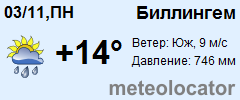 Представляем прогноз погоды в Биллингеме на 3 дня (сегодня, завтра и послезавтра). Подробнее...Щелкните на соответствующем дне, чтобы получить подробный прогноз по нему. Для просмотра расширенных данных щелкните по заголовку соответствующего блока из группы блоков, расплолженных ниже основного прогноза. Для получения данных на другие дни используйте стрелки слева и справа от таблицы или навигационное меню в левой колонке страницы. Свернуть