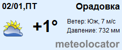Представляем прогноз погоды в Орадовке на 3 дня (сегодня, завтра и послезавтра). Подробнее...Щелкните на соответствующем дне, чтобы получить подробный прогноз по нему. Для просмотра расширенных данных щелкните по заголовку соответствующего блока из группы блоков, расплолженных ниже основного прогноза. Для получения данных на другие дни используйте стрелки слева и справа от таблицы или навигационное меню в левой колонке страницы. Свернуть