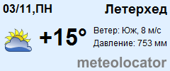 Представляем прогноз погоды в Летерхеде на 3 дня (сегодня, завтра и послезавтра). Подробнее...Щелкните на соответствующем дне, чтобы получить подробный прогноз по нему. Для просмотра расширенных данных щелкните по заголовку соответствующего блока из группы блоков, расплолженных ниже основного прогноза. Для получения данных на другие дни используйте стрелки слева и справа от таблицы или навигационное меню в левой колонке страницы. Свернуть