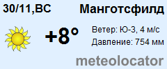 Представляем прогноз погоды в Манготсфилде на 3 дня (сегодня, завтра и послезавтра). Подробнее...Щелкните на соответствующем дне, чтобы получить подробный прогноз по нему. Для просмотра расширенных данных щелкните по заголовку соответствующего блока из группы блоков, расплолженных ниже основного прогноза. Для получения данных на другие дни используйте стрелки слева и справа от таблицы или навигационное меню в левой колонке страницы. Свернуть