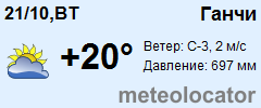 Представляем прогноз погоды в Ганчи на 3 дня (сегодня, завтра и послезавтра). Подробнее...Щелкните на соответствующем дне, чтобы получить подробный прогноз по нему. Для просмотра расширенных данных щелкните по заголовку соответствующего блока из группы блоков, расплолженных ниже основного прогноза. Для получения данных на другие дни используйте стрелки слева и справа от таблицы или навигационное меню в левой колонке страницы. Свернуть