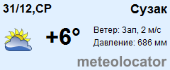 Представляем прогноз погоды в Сузаке на 3 дня (сегодня, завтра и послезавтра). Подробнее...Щелкните на соответствующем дне, чтобы получить подробный прогноз по нему. Для просмотра расширенных данных щелкните по заголовку соответствующего блока из группы блоков, расплолженных ниже основного прогноза. Для получения данных на другие дни используйте стрелки слева и справа от таблицы или навигационное меню в левой колонке страницы. Свернуть