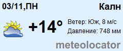 Представляем прогноз погоды в Калне на 3 дня (сегодня, завтра и послезавтра). Подробнее...Щелкните на соответствующем дне, чтобы получить подробный прогноз по нему. Для просмотра расширенных данных щелкните по заголовку соответствующего блока из группы блоков, расплолженных ниже основного прогноза. Для получения данных на другие дни используйте стрелки слева и справа от таблицы или навигационное меню в левой колонке страницы. Свернуть