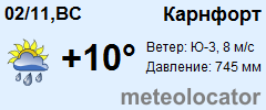 Представляем прогноз погоды в Карнфорте на 3 дня (сегодня, завтра и послезавтра). Подробнее...Щелкните на соответствующем дне, чтобы получить подробный прогноз по нему. Для просмотра расширенных данных щелкните по заголовку соответствующего блока из группы блоков, расплолженных ниже основного прогноза. Для получения данных на другие дни используйте стрелки слева и справа от таблицы или навигационное меню в левой колонке страницы. Свернуть