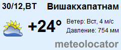 Представляем прогноз погоды в Вишакхапатнаме на 3 дня (сегодня, завтра и послезавтра). Подробнее...Щелкните на соответствующем дне, чтобы получить подробный прогноз по нему. Для просмотра расширенных данных щелкните по заголовку соответствующего блока из группы блоков, расплолженных ниже основного прогноза. Для получения данных на другие дни используйте стрелки слева и справа от таблицы или навигационное меню в левой колонке страницы. Свернуть