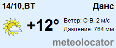 Представляем прогноз погоды в Дансе на 3 дня (сегодня, завтра и послезавтра). Подробнее...Щелкните на соответствующем дне, чтобы получить подробный прогноз по нему. Для просмотра расширенных данных щелкните по заголовку соответствующего блока из группы блоков, расплолженных ниже основного прогноза. Для получения данных на другие дни используйте стрелки слева и справа от таблицы или навигационное меню в левой колонке страницы. Свернуть