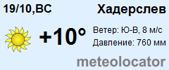 Представляем прогноз погоды в Хадерслеве на 3 дня (сегодня, завтра и послезавтра). Подробнее...Щелкните на соответствующем дне, чтобы получить подробный прогноз по нему. Для просмотра расширенных данных щелкните по заголовку соответствующего блока из группы блоков, расплолженных ниже основного прогноза. Для получения данных на другие дни используйте стрелки слева и справа от таблицы или навигационное меню в левой колонке страницы. Свернуть