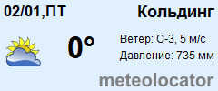 Представляем прогноз погоды в Кольдинге на 3 дня (сегодня, завтра и послезавтра). Подробнее...Щелкните на соответствующем дне, чтобы получить подробный прогноз по нему. Для просмотра расширенных данных щелкните по заголовку соответствующего блока из группы блоков, расплолженных ниже основного прогноза. Для получения данных на другие дни используйте стрелки слева и справа от таблицы или навигационное меню в левой колонке страницы. Свернуть